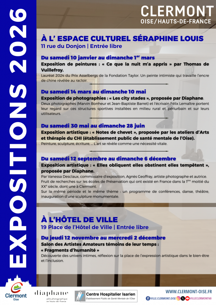 Situé au 11 rue du Donjon, l’espace Séraphine Louis accueille des expositions artistiques et thématiques et est un lieu où sont données des conférences.