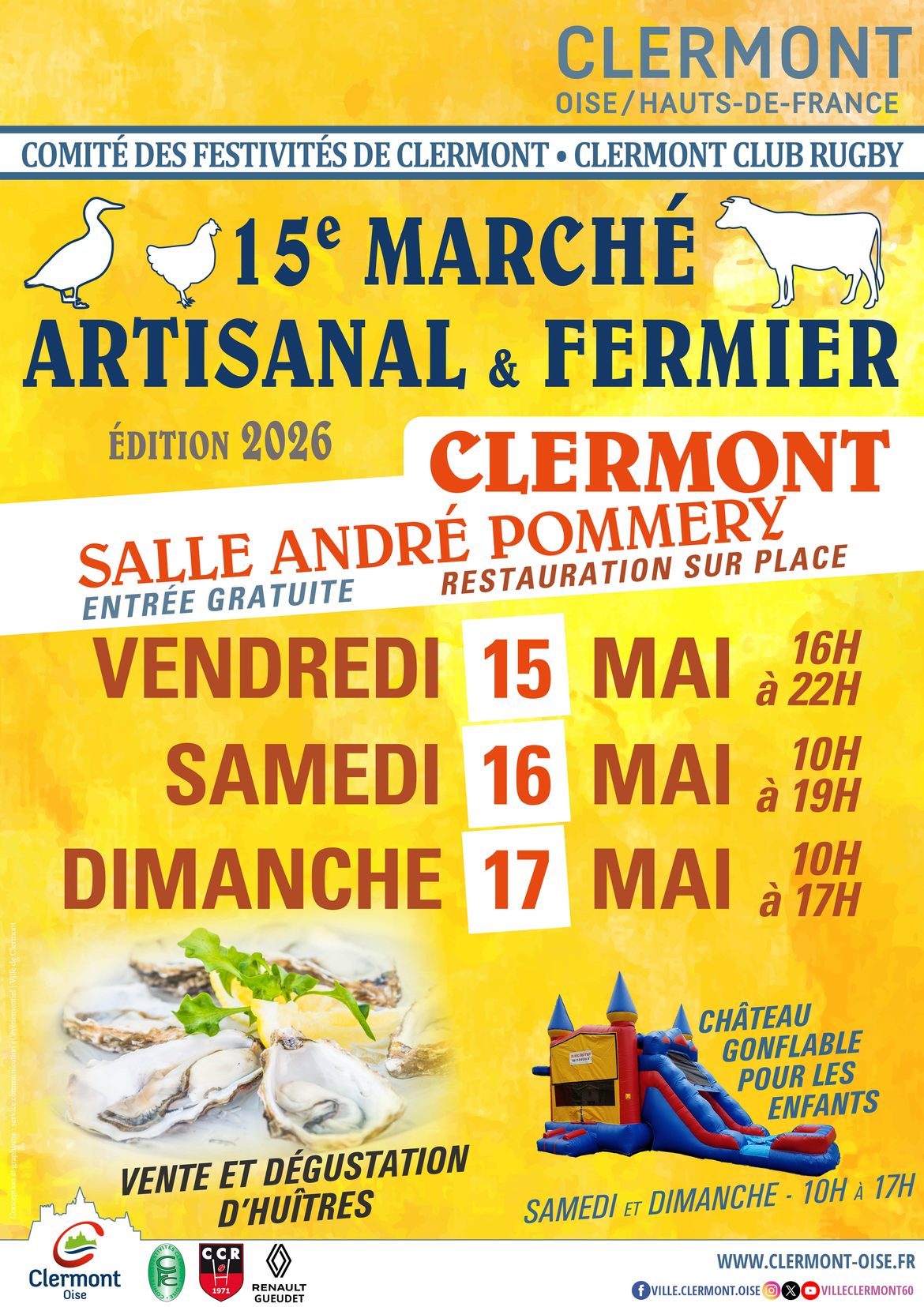 Le Comité des Festivités de Clermont et le Clermont Club Rugby vous donnent rendez-vous pour la 15ᵉ édition du Marché artisanal & fermier !