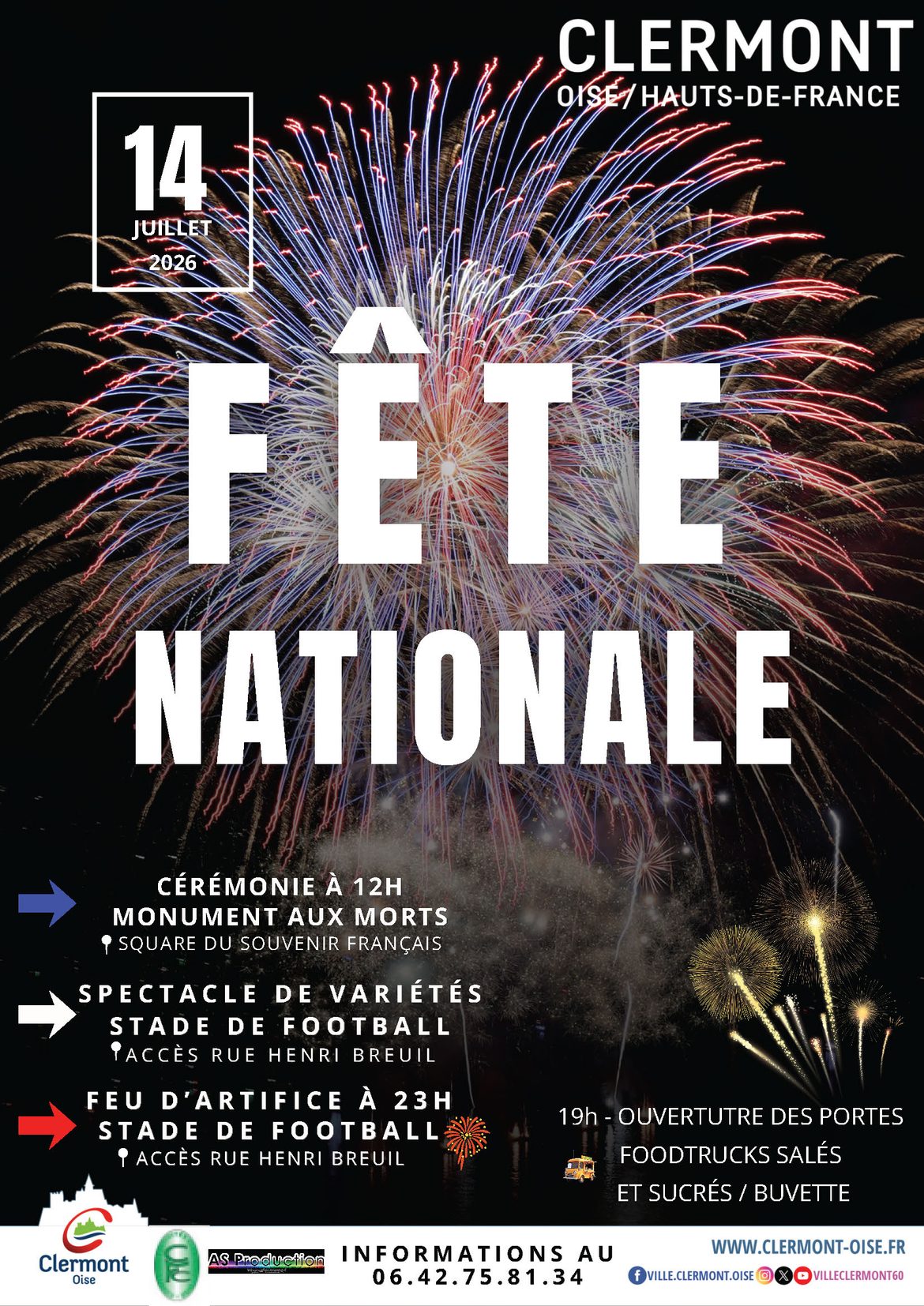 Fête nationale à Clermont, 14 juillet 2026 – Ville de Clermont (Oise) – Site Officiel