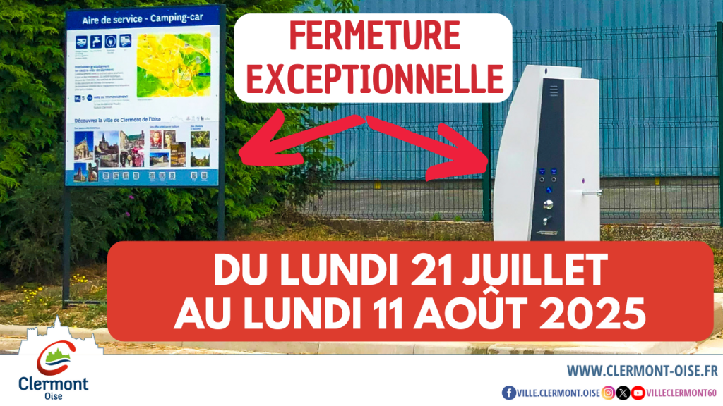 ⚠️ En raison de l’installation de la fête foraine, l’aire de service pour camping-cars située Parking Darius – Centre Socioculturel sera fermée du lundi 21 juillet au lundi 11 août 2025 inclus.