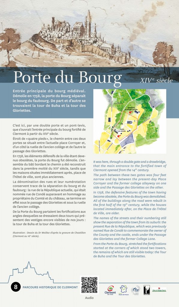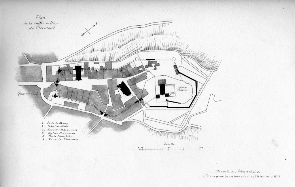 It was here, through a double gate and a drawbridge, that the main entrance to the fortified town of Clermont opened from the 14th century.