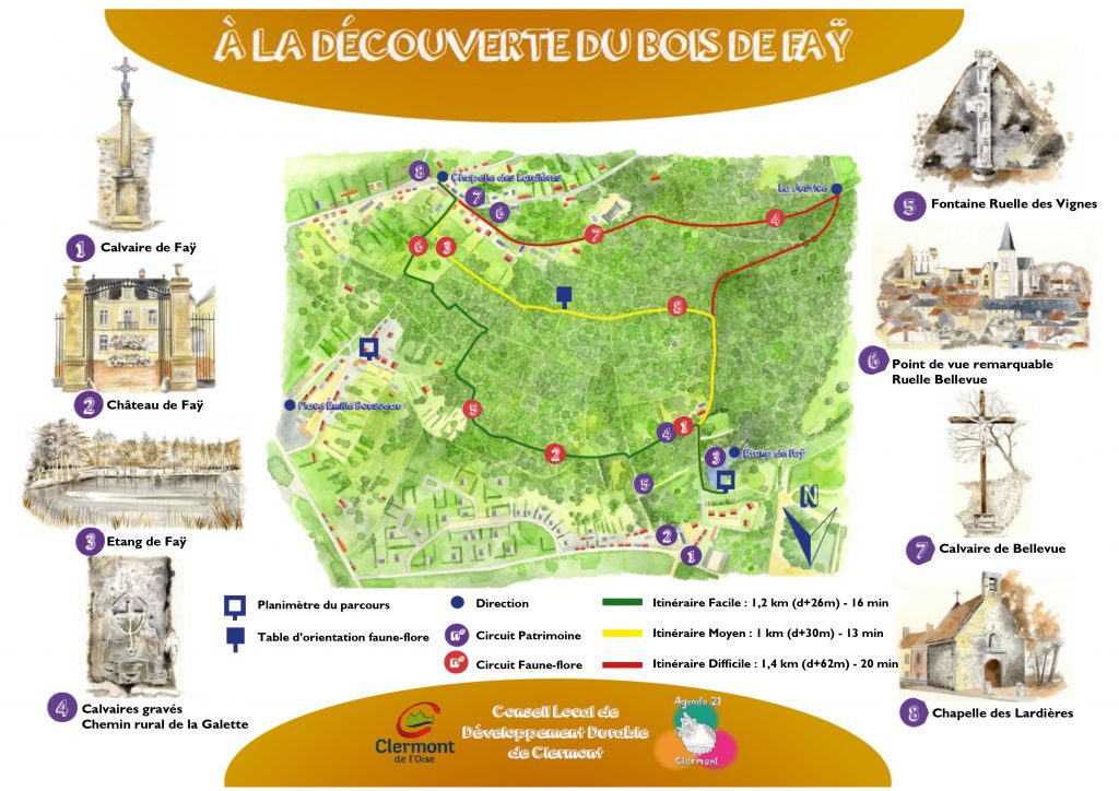Autour de la butte de la ville de Clermont, se trouve une véritable « ceinture verte » donnant ainsi un cadre de vie privilégié à ses habitants. Le Parcours pédestre des bois de Faÿ est accessible à partir de l’Etang de Faÿ.